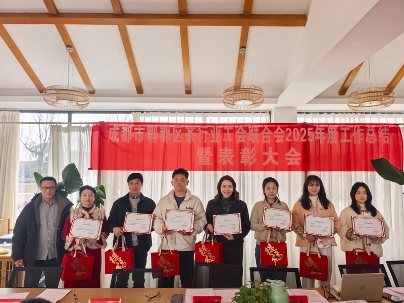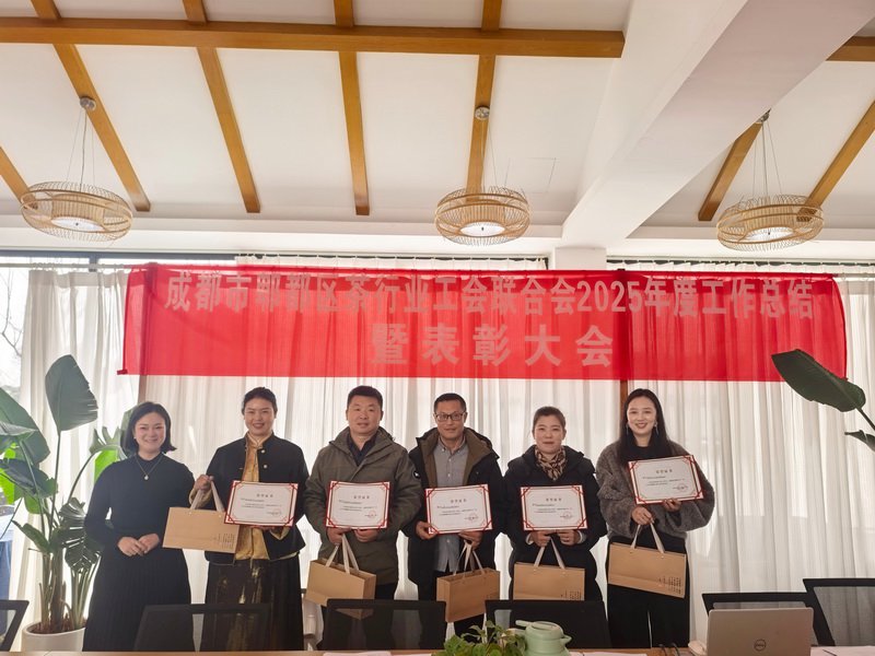 表彰环节成为大会亮点。郫都区茶行业工会联合会副主席路建东宣读表彰决定,成都水隐桑田生态农业有限公司等 5 家单位凭借在品牌打造、品质提升、服务创新等领域的深耕细作与突出业绩,获评 “2025 年度郫都区茶行业先进单位”;李韩、陈韵如等 8 名个人则以潜心钻研制茶技艺、深耕一线服务客户、助力产业创新发展的实干表现,荣获 “2025 年度郫都区茶行业先进个人” 称号,他们用行动诠释了新时代茶人的责任与担当,为行业发展树立了榜样。